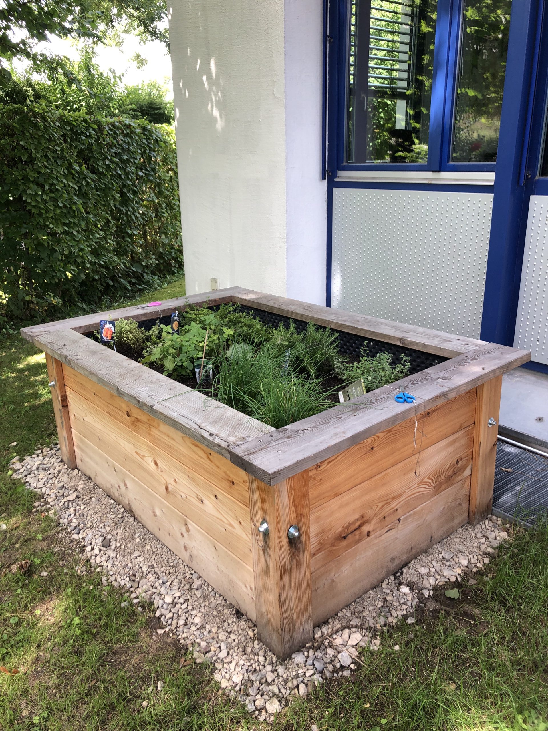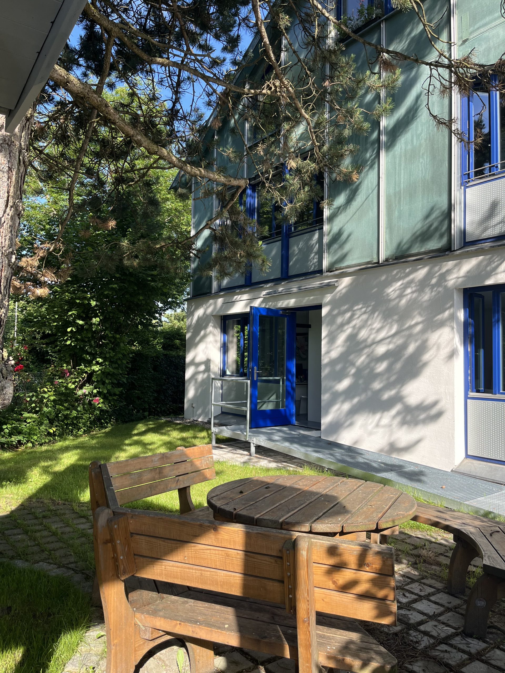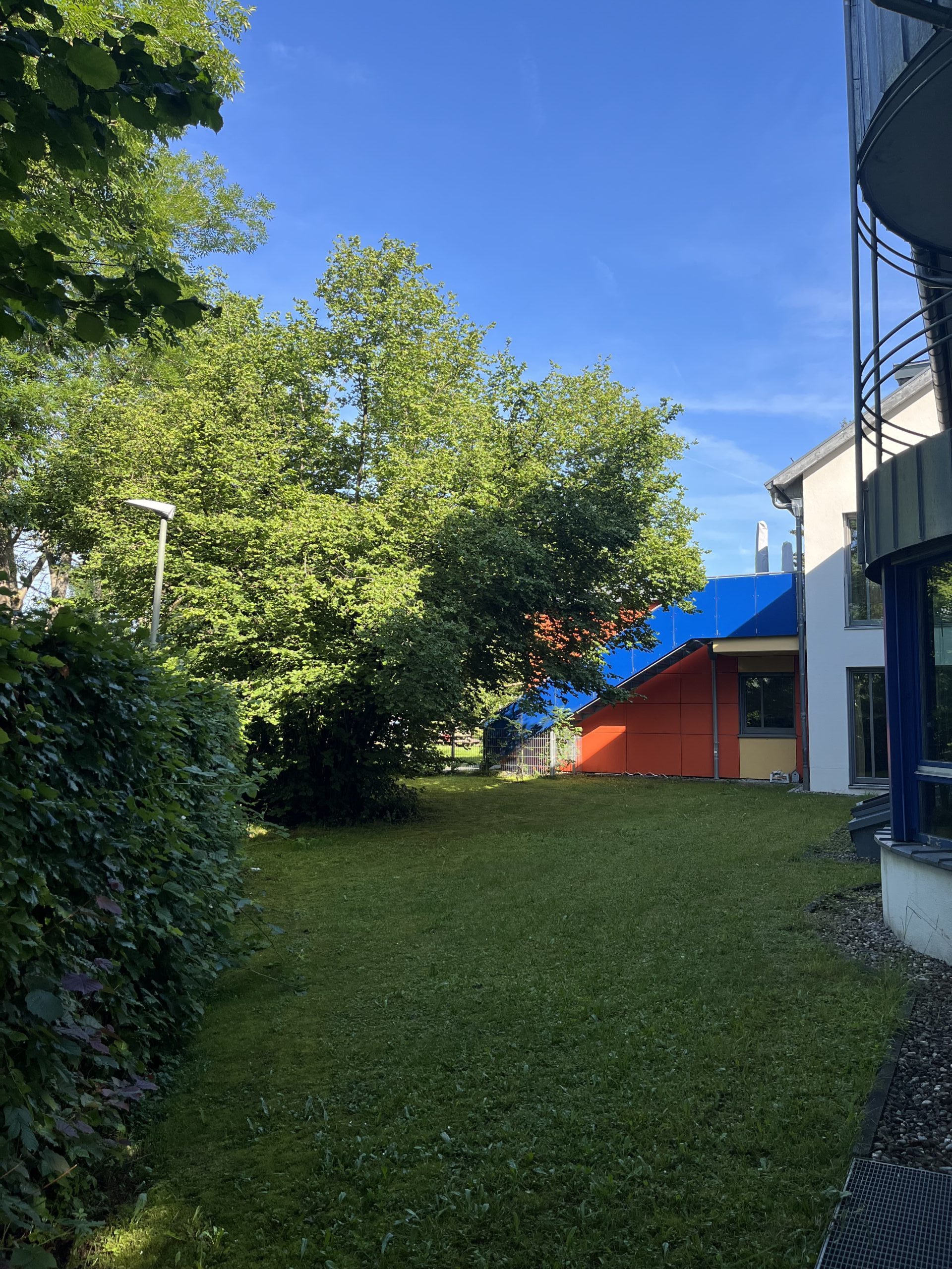 Zum Außenbereich gehört ein schöner Garten mit Sitzmöglichkeit und viel Platz zum Spielen.